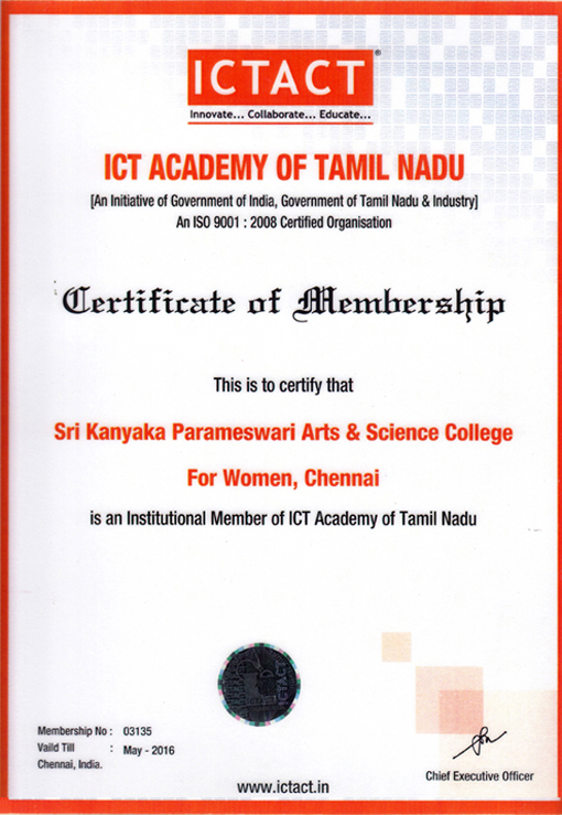 The Management Committee of the Sri Kanyaka Parameswari Devasthanam & Charities have founded the Sri Kanyaka Parameswari Arts & Science College for Women to promote women’s education in Chennai. Under the Management of Srikanyaka Parameshwari Devasthanam & Charities) Affiliated to the University of Madras